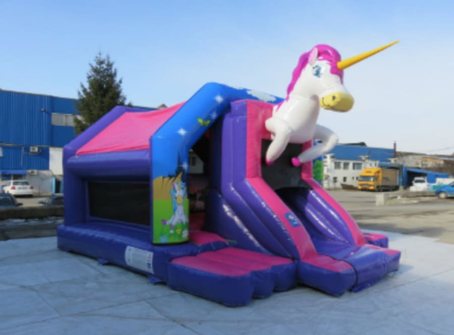 The front slide bouncer products from us cleverly incorporates a good slide and big bouncing area. It can also hold a disco speaker at a additional £10 and lights! For more information about our Unicorn Front Slide Bouncy castle or any of the other front slide bouncer products, please contacts at info@fullofbounce.com
